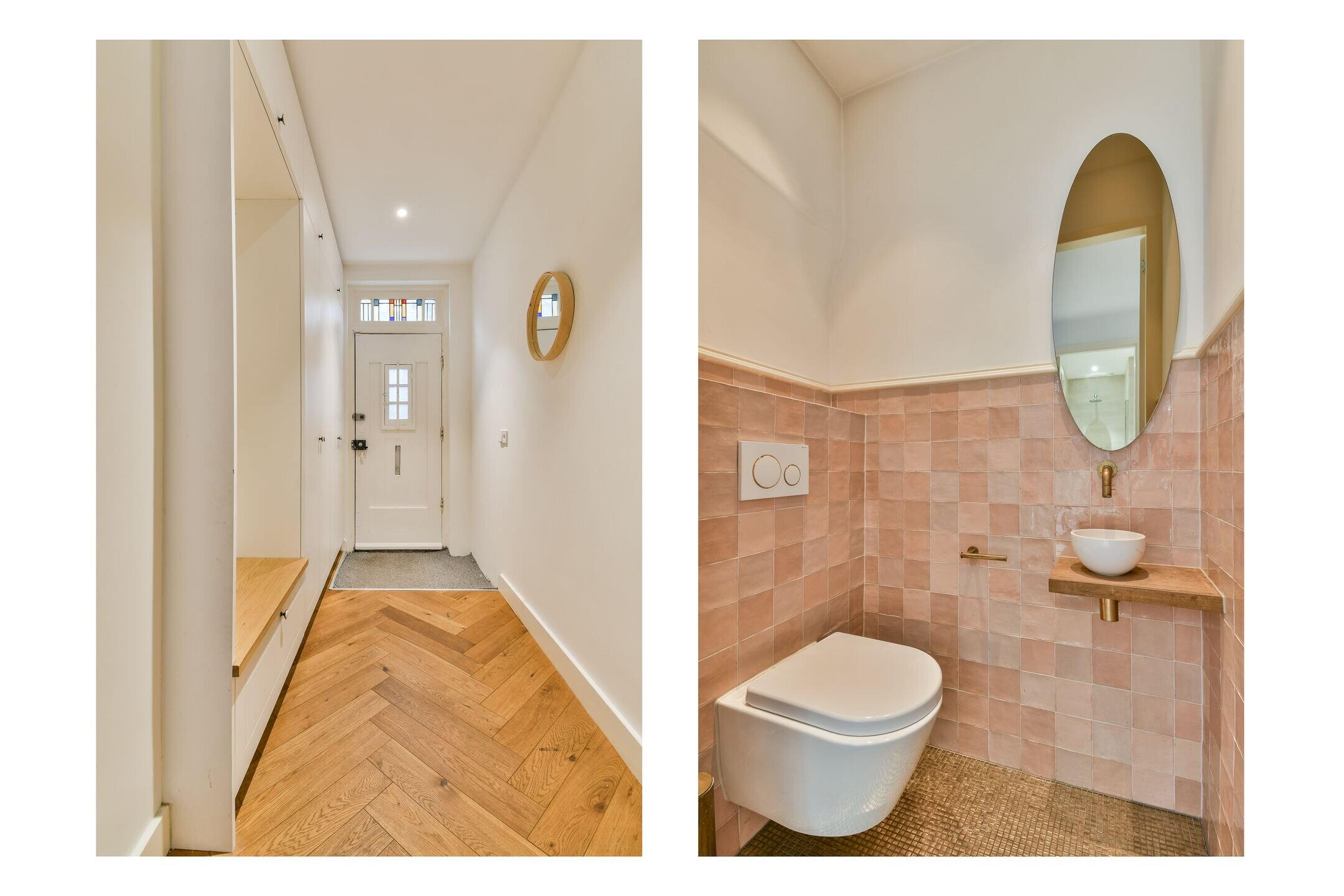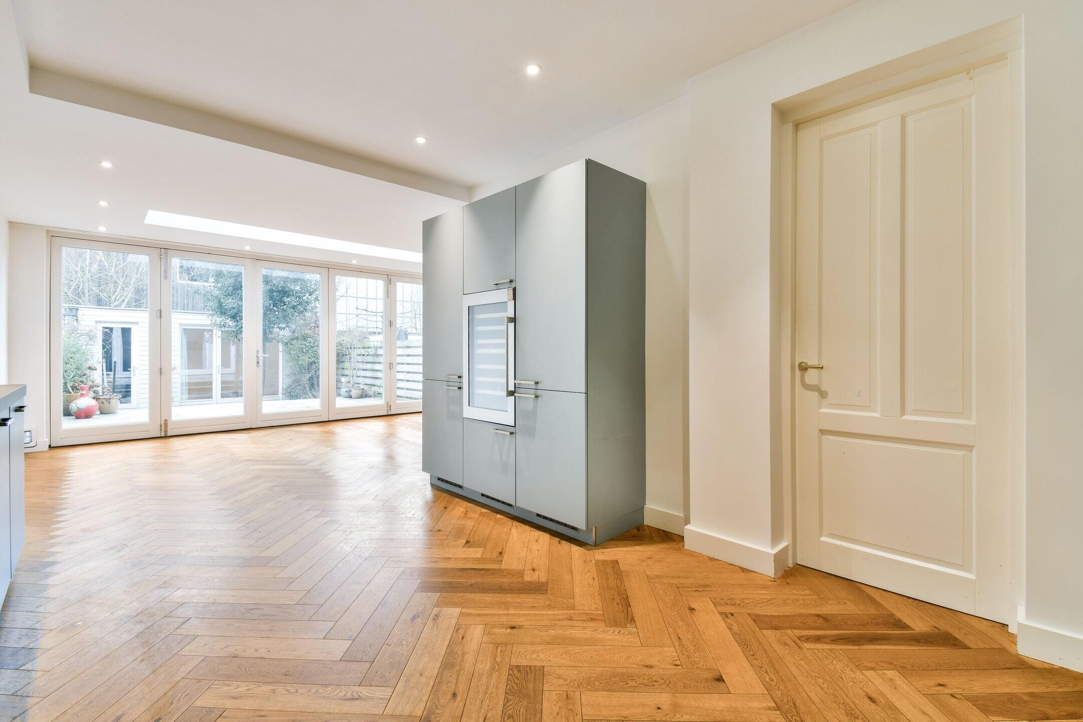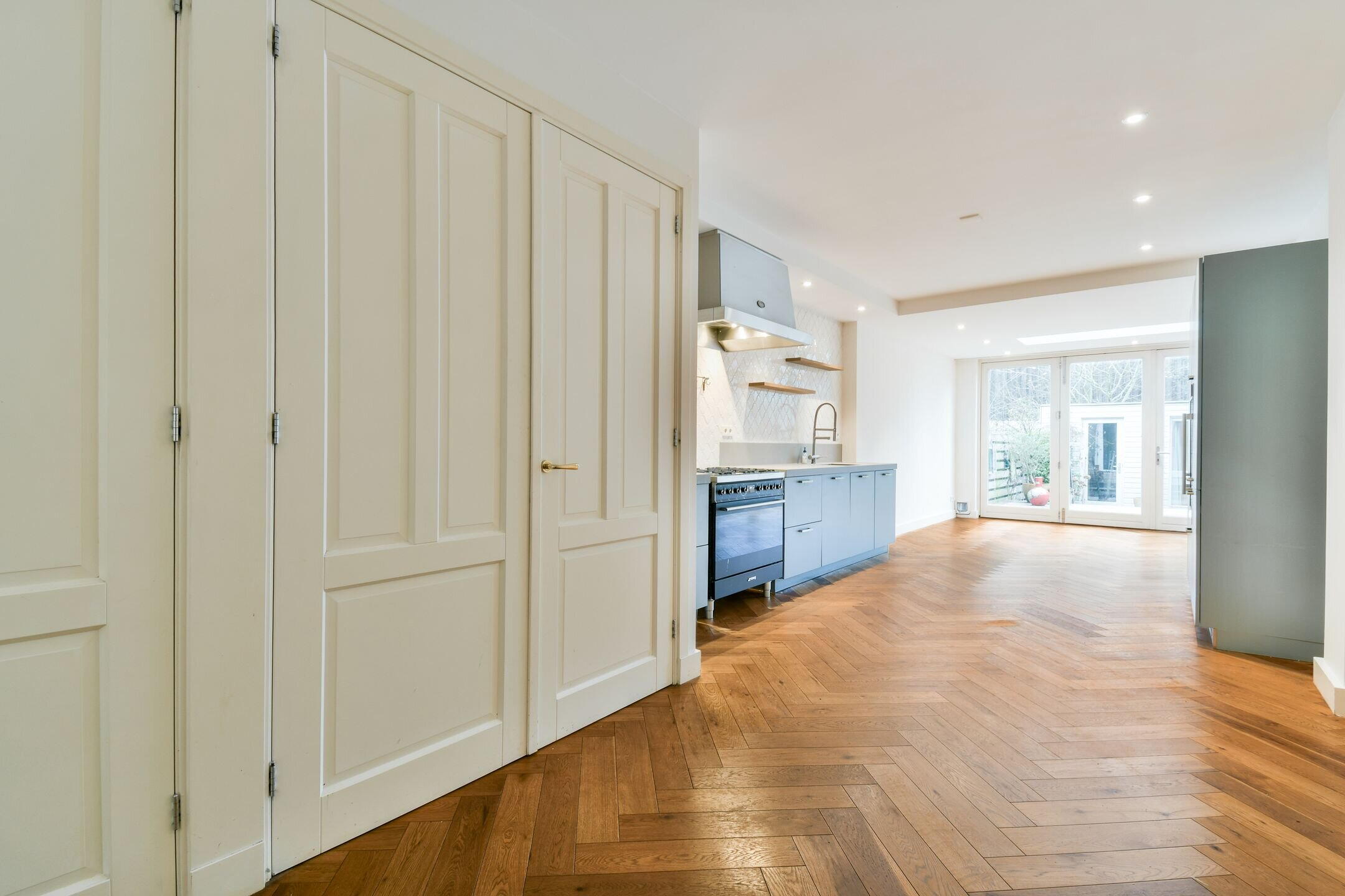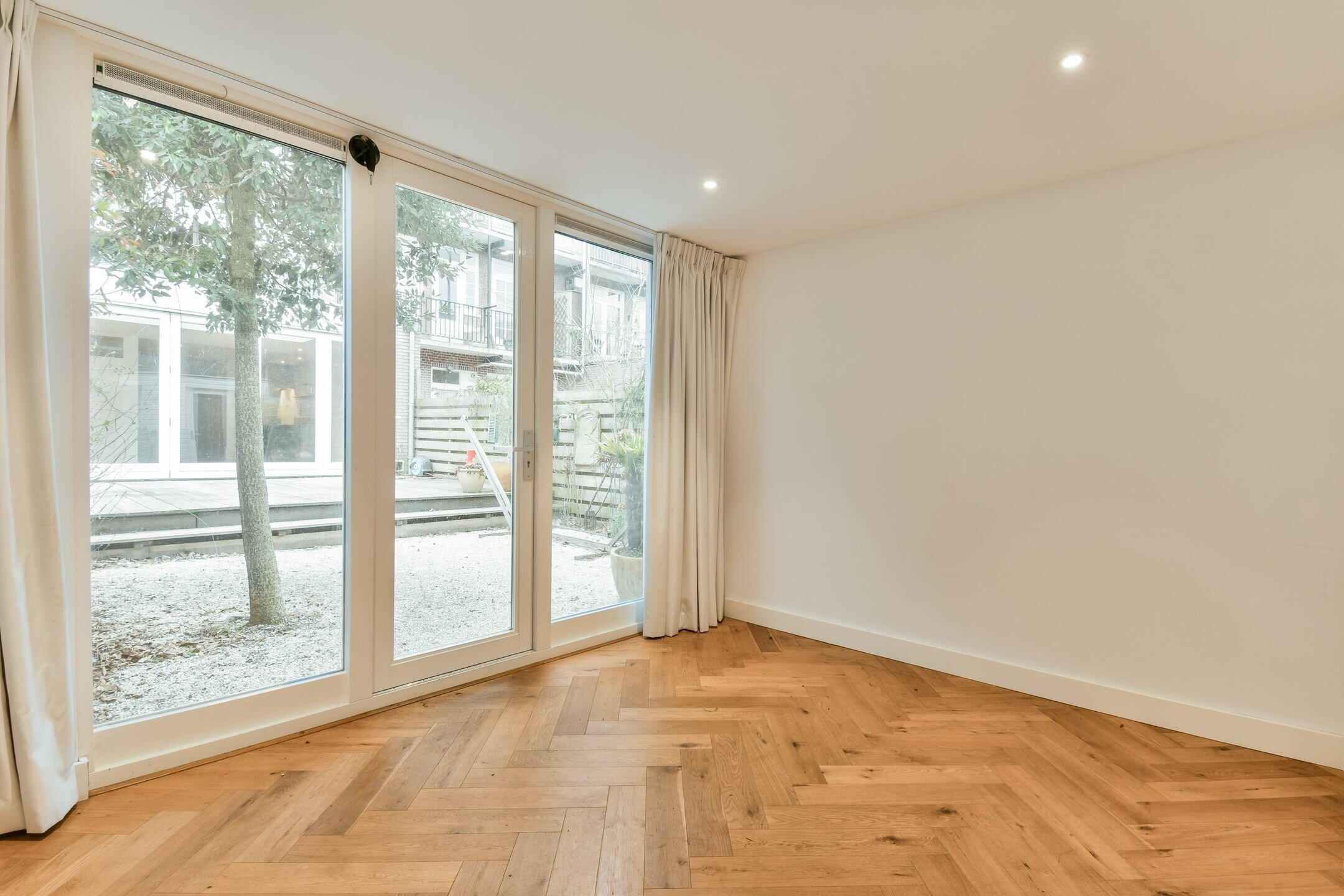 Tijdens de renovatie zijn alleen hoogwaardige materialen gebruikt, waaronder hardhouten kozijnen, dubbel glas en een prachtige houten visgraatvloer.