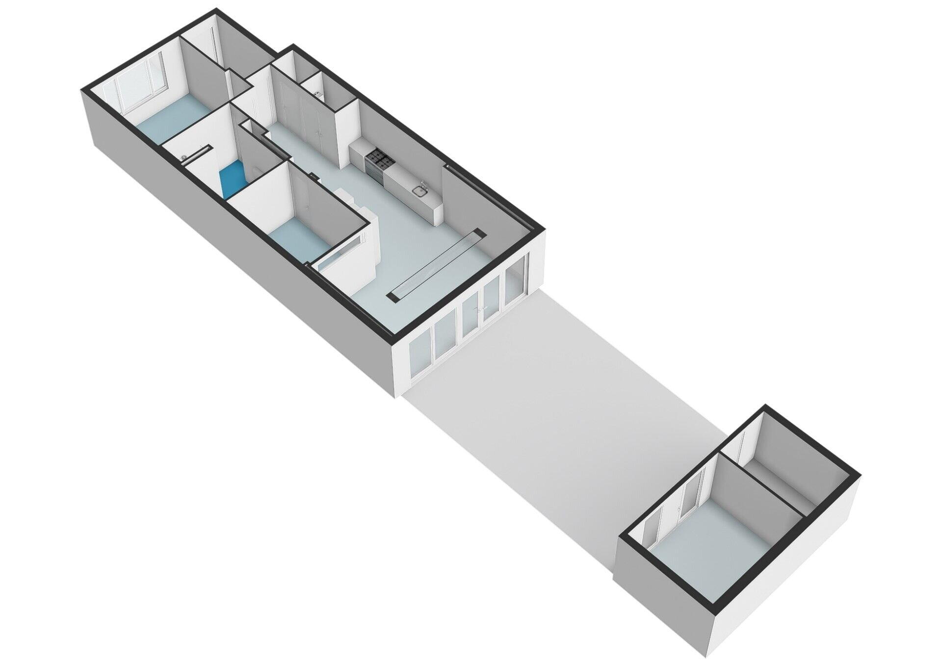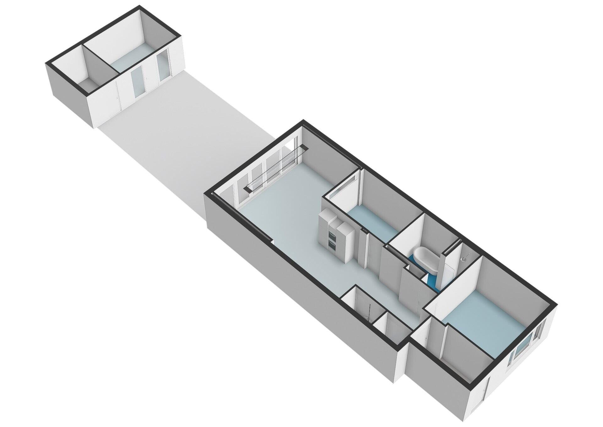 Via je eigen entree stap je binnen in de hal met garderobe. Aan de voorzijde ligt de ruime slaapkamer, terwijl de tweede slaapkamer zich verderop bevindt. De moderne badkamer is voorzien van een ligbad, dubbele wastafel en inloopdouche. Daarnaast is er een separaat toilet met fontein en een handige bergkast met opstelplaats voor wasmachine, droger én CV-ketel.